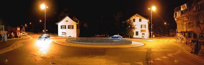Photomontage Kreisel in der Nacht